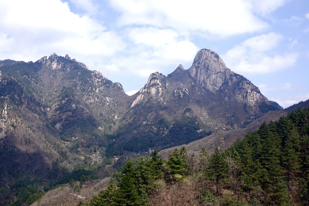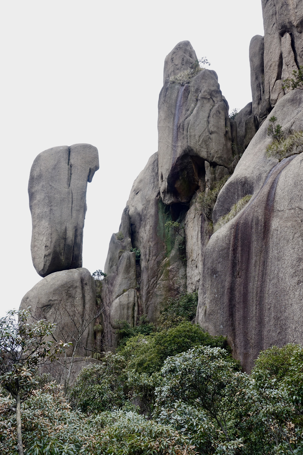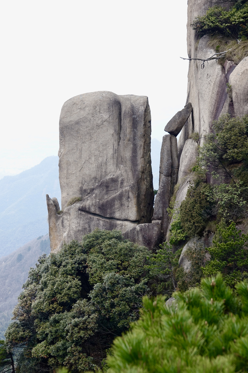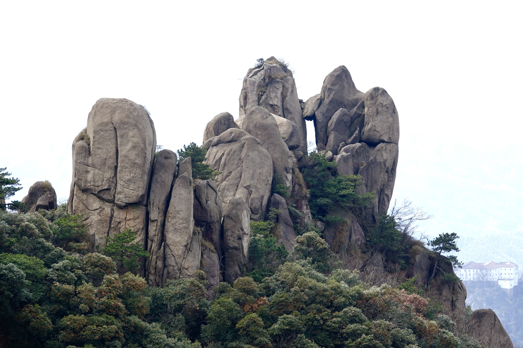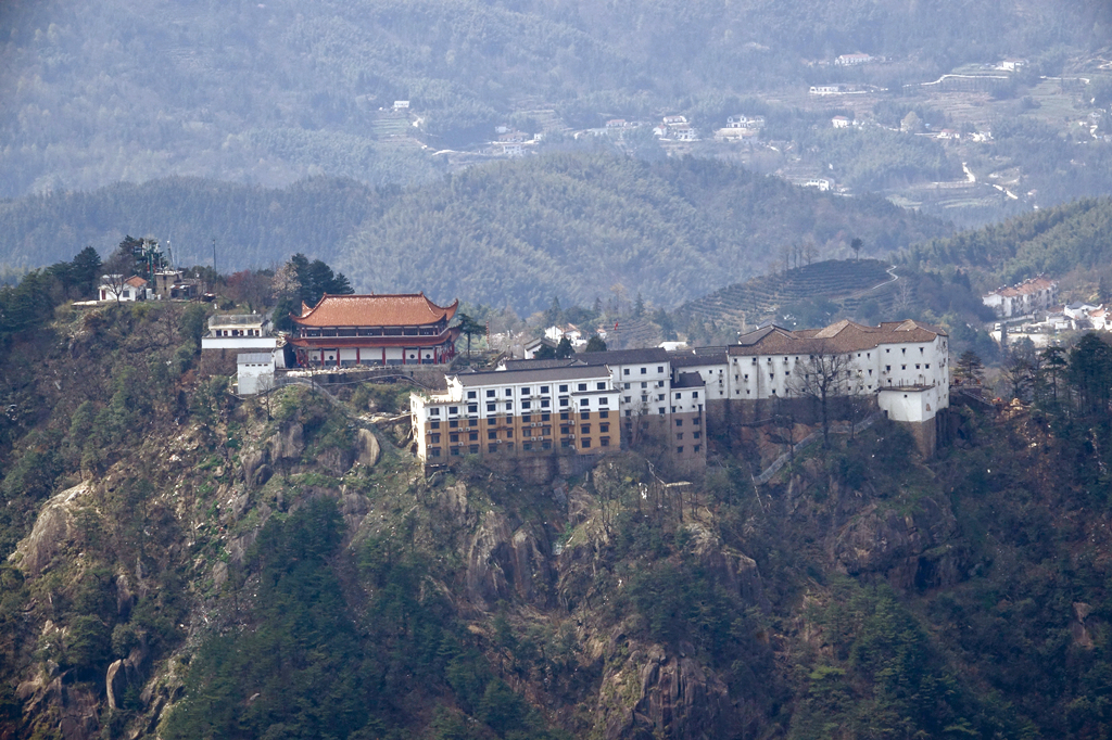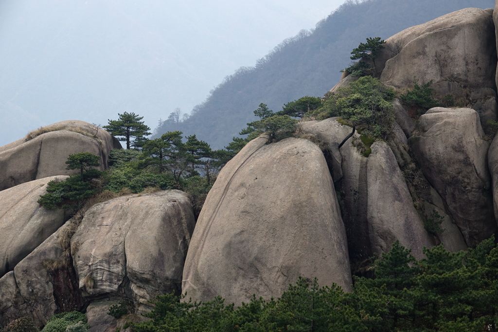 由于其隆起幅度自核心部位向周?chē)饾u減小,外圍山地由硬度較花崗巖小的花崗閃長(zhǎng)巖和沉積巖組成,易被沖刷蝕低,故整個(gè)九華山體由眾多千姿百態(tài)、高低參差的中山、低山、丘陵和山間盆地等組成。李仁奇 攝