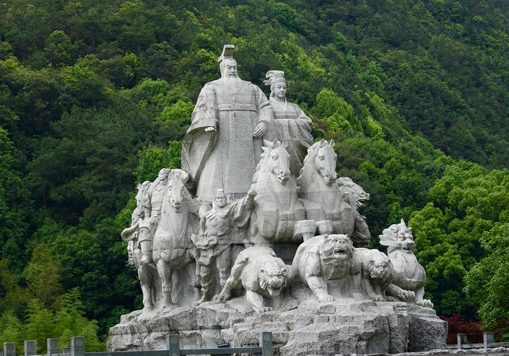 軒轅黃帝南巡雕塑就矗立在鼎湖峰景點(diǎn)入口的十字路口中央。李仁奇 攝