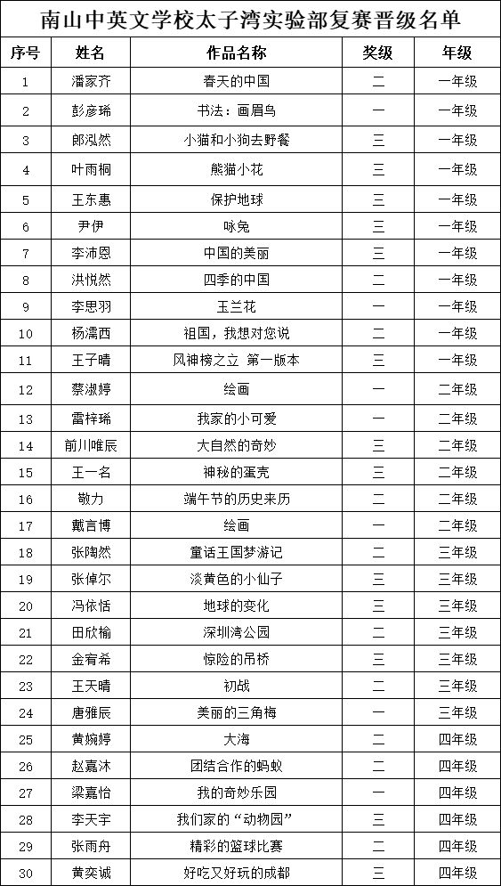 自2021年1月,活動征稿啟動以來,獲得了深圳市廣大中小學生、教師、文學愛好者的熱烈響應積極參與,吸引了深圳百余所學校的上萬人關注報名。現公布南山中英文學校太子灣實驗部晉級復賽名單如下: