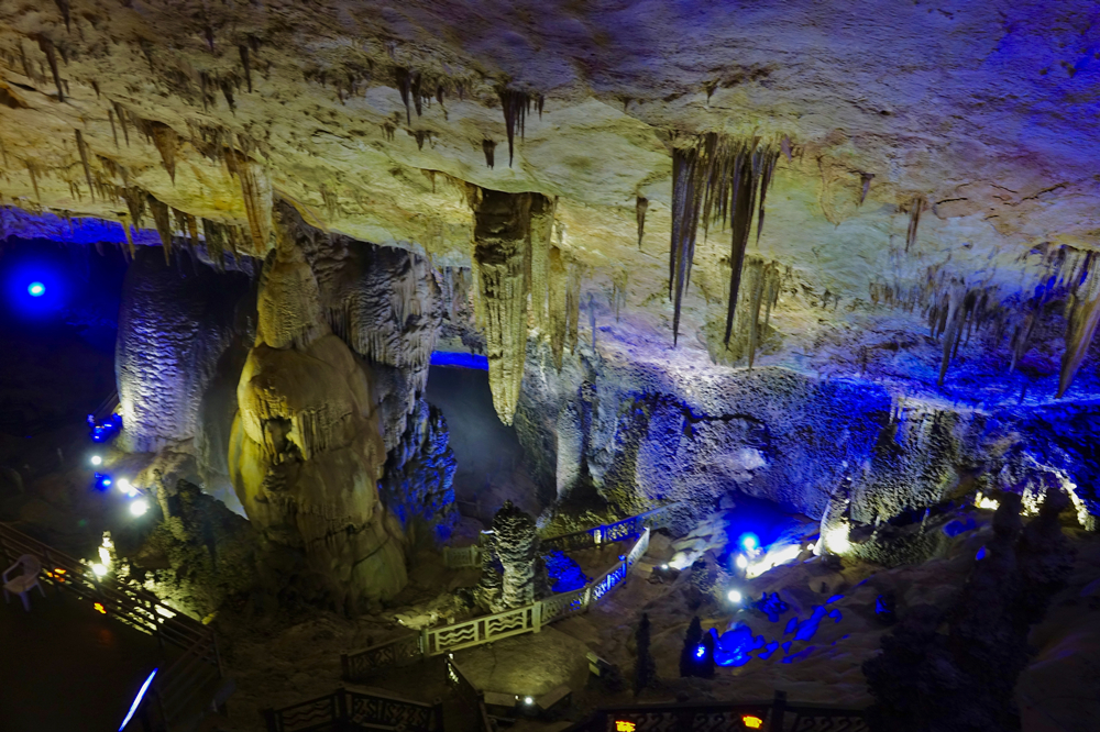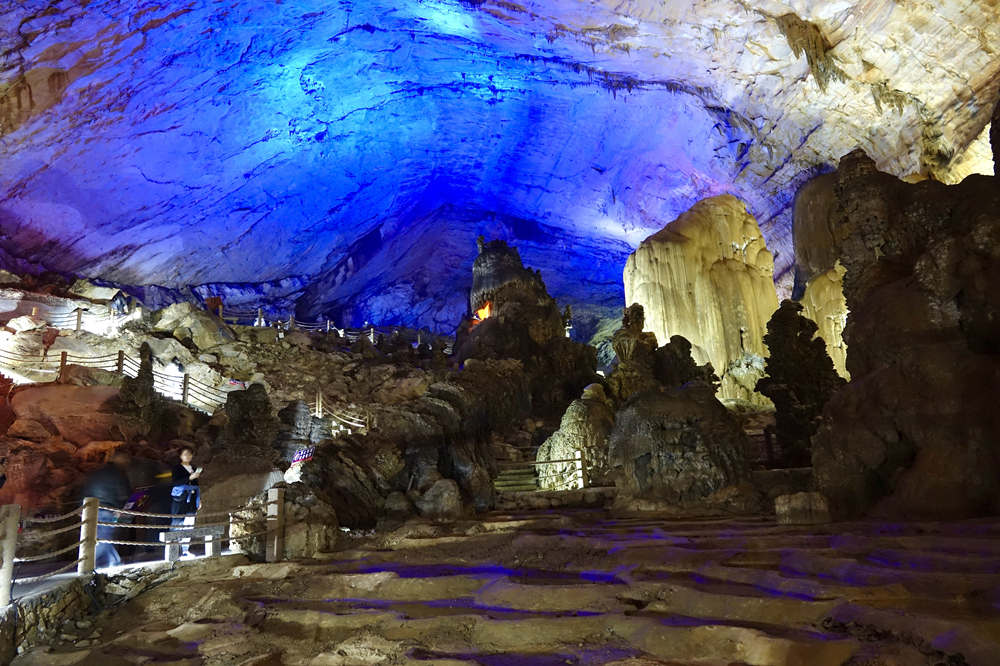 全洞容積達(dá)500萬(wàn)立方米,有上、中、下三層,洞中遍布石筍、石柱、石芽、石旗等四十多種洞穴堆積物,形成千姿百態(tài)的巖溶景觀(guān)。李仁奇 攝
