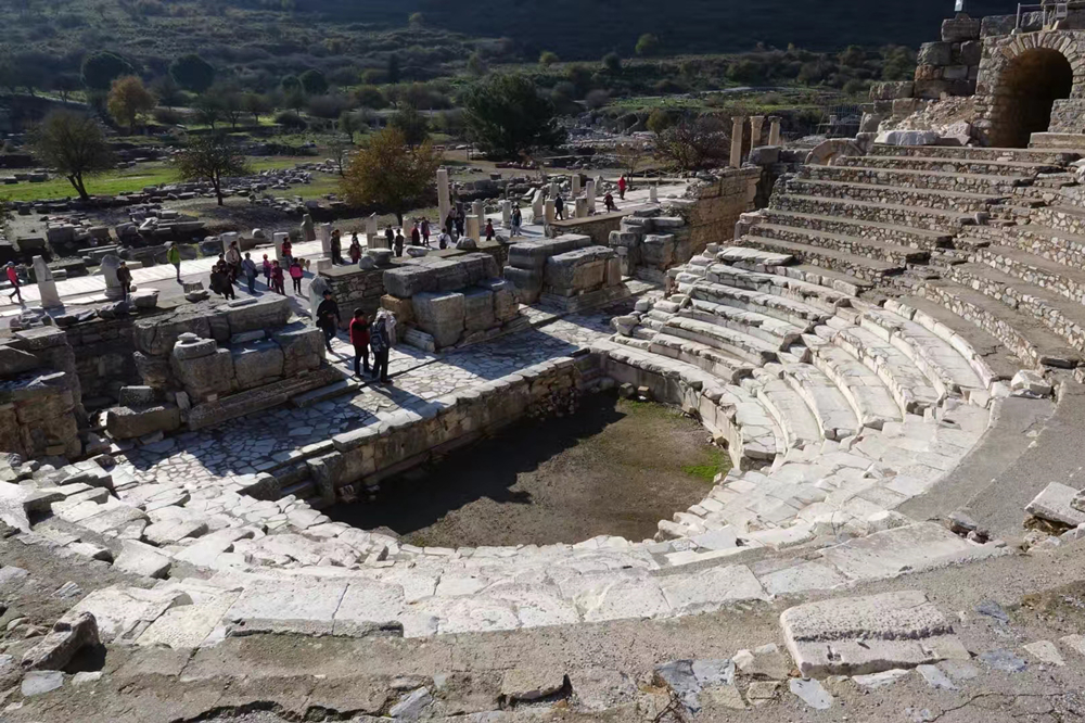 在以弗所古城遺址可以看到用大理石修建的街道、商店、市集、圖書館、柱廊大街、哈德良神殿、劇場(chǎng)、浴場(chǎng)、妓院等遺跡。走進(jìn)古城猶如穿過時(shí)光隧道,可以遙想2900多年前這座城市的繁盛情景。李仁奇 攝