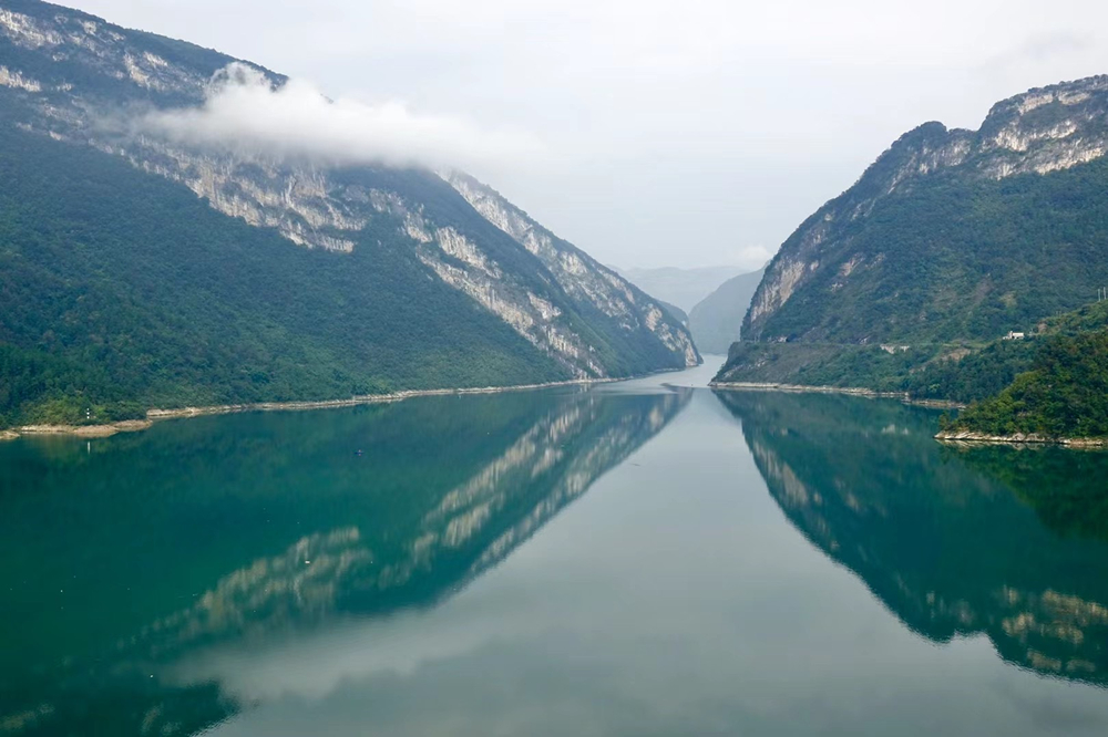 山倒映在水中,水中的山更加迷人。李仁奇 攝