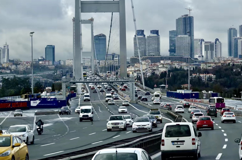 博斯普魯斯跨海大橋在市區(qū)中心橫跨歐亞大陸之間的博斯普魯斯海峽,成為這座城市的地標(biāo)。李仁奇 攝