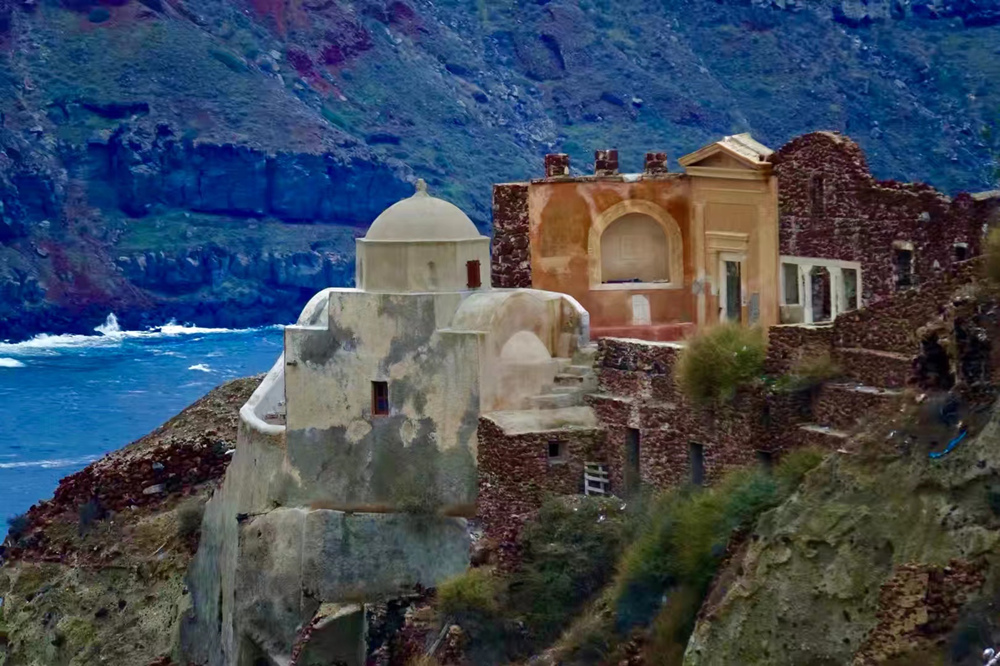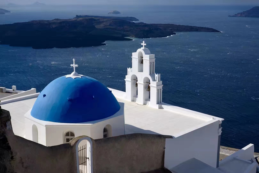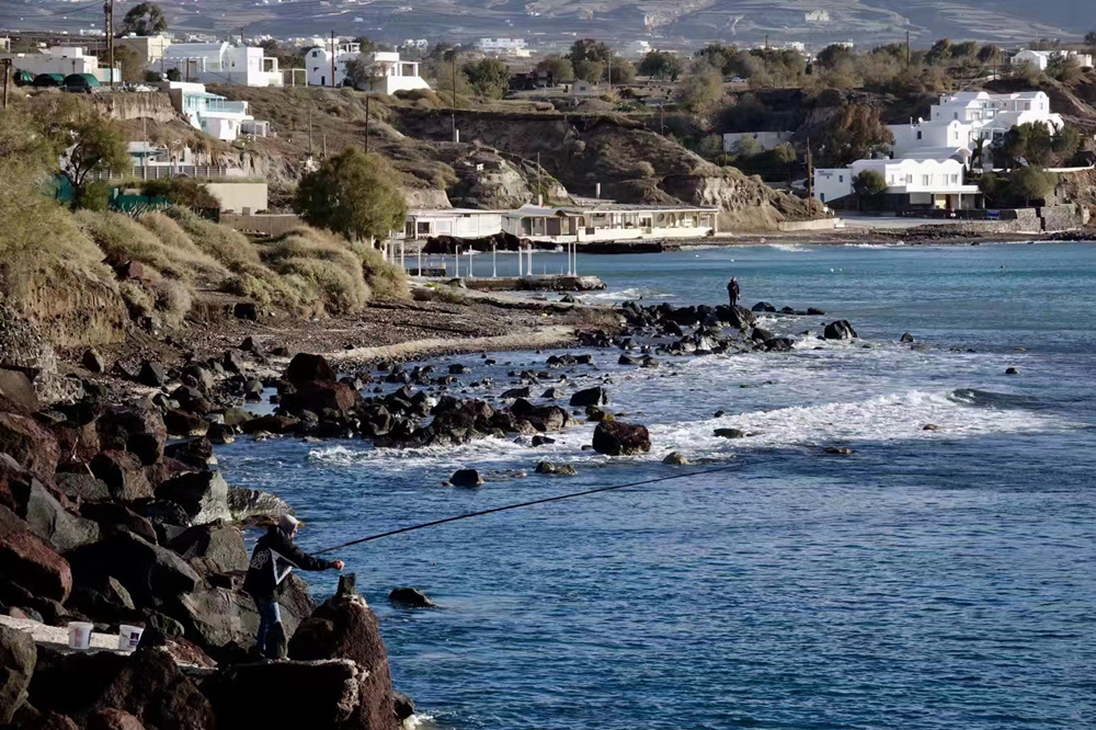 現(xiàn)在的圣托里尼島是希臘最著名的旅游勝地,以其充足的陽光,宜人的地中海氣候、獨特的地形地貌和藍白色的建筑吸引著全球的游客。李仁奇 攝