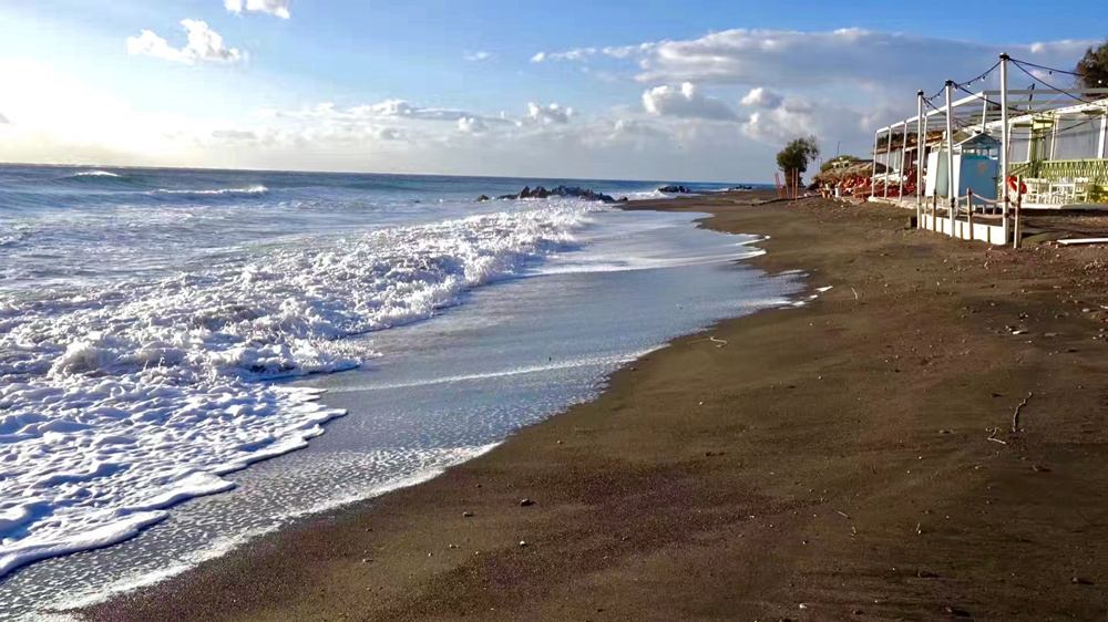 黑沙灘是圣托里尼有名的礦物沙灘,在旅游旺季時游人非常多。這里的沙灘其實是火山噴發(fā)后的火山灰沉積下來的小沙石,經(jīng)過長期的風化形成了如今的黑沙灘。李仁奇 攝