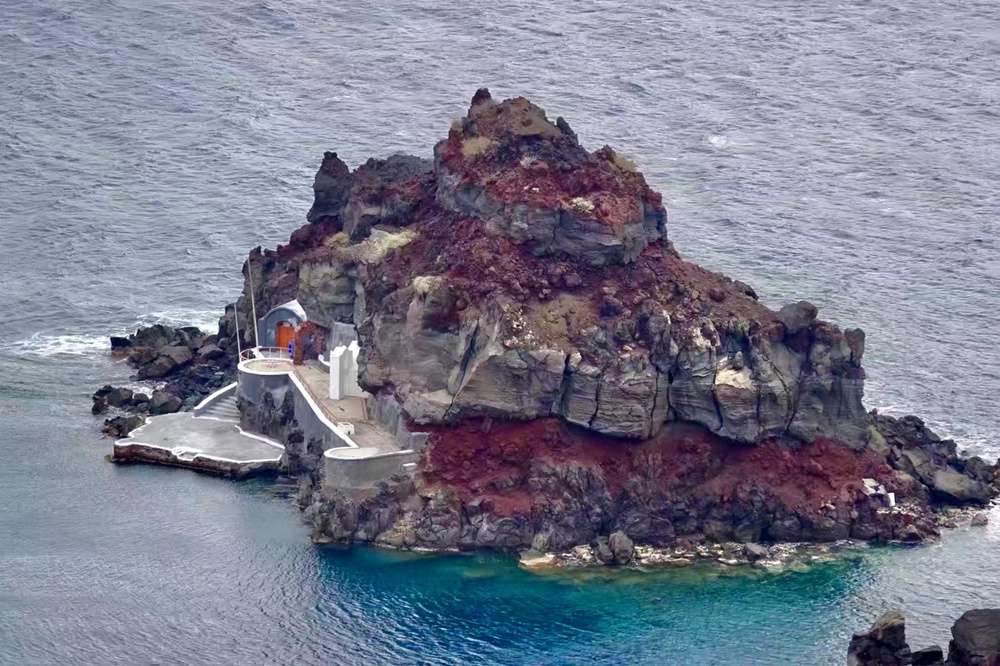 圣島的地貌特點是由西向東從高到低,西側(cè)為懸崖,懸崖上是高坡,向東是長長的緩坡區(qū)域。李仁奇 攝
