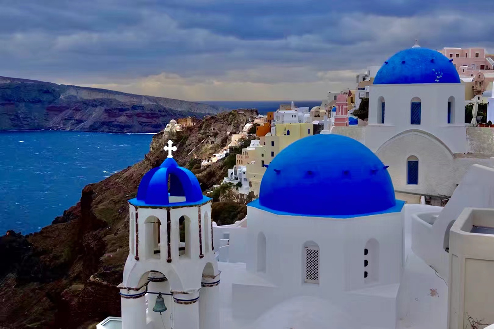 伊亞還是公認的擁有全世界最美日落的地方,最佳游玩季節(jié)是6月--8月,如果那時來,想在著名的藍頂教堂旁拍一張留影是要排長隊的。李仁奇 攝