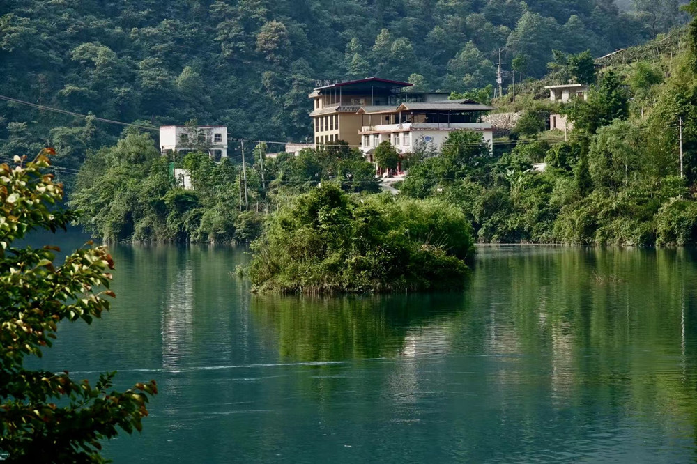 古鎮(zhèn)掩映在青山綠水之間,山上云蒸霧繞,山下新房林立,湖光山色,儼然是一幅秀美的水墨畫。李仁奇 攝