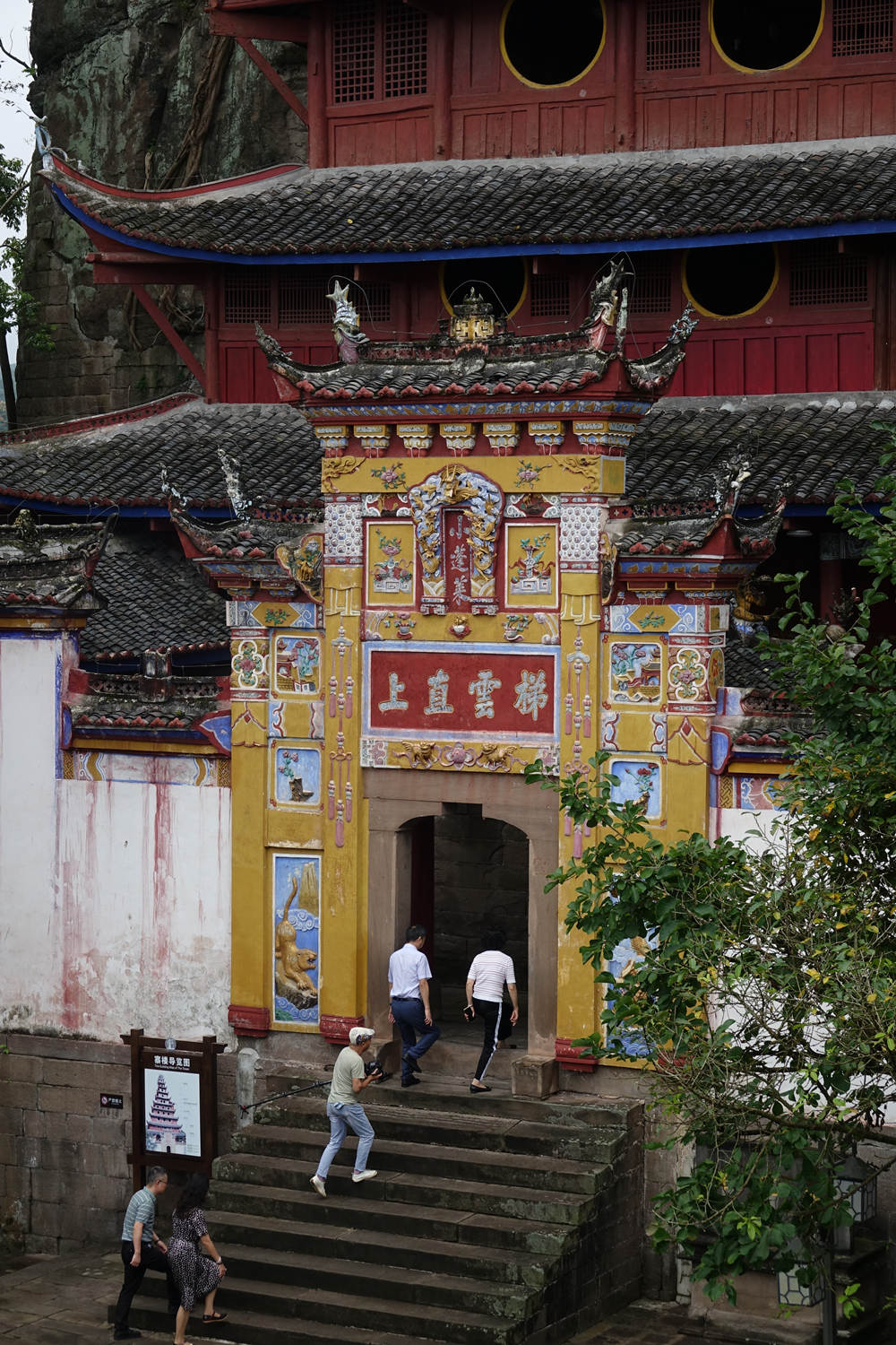 全寨共分兩部分,山下9層和山上3層錯落有致,從遠處眺望12層樓重檐高聳,渾然一體,宏偉壯觀,共高56米,閣內(nèi)每層石壁上均有題詠。李仁奇 攝