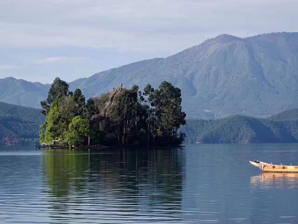 里格島是瀘沽湖內(nèi)一個(gè)美麗的半島,海島三面環(huán)水,左右青山環(huán)抱,傍立格姆女神山。李仁奇 攝