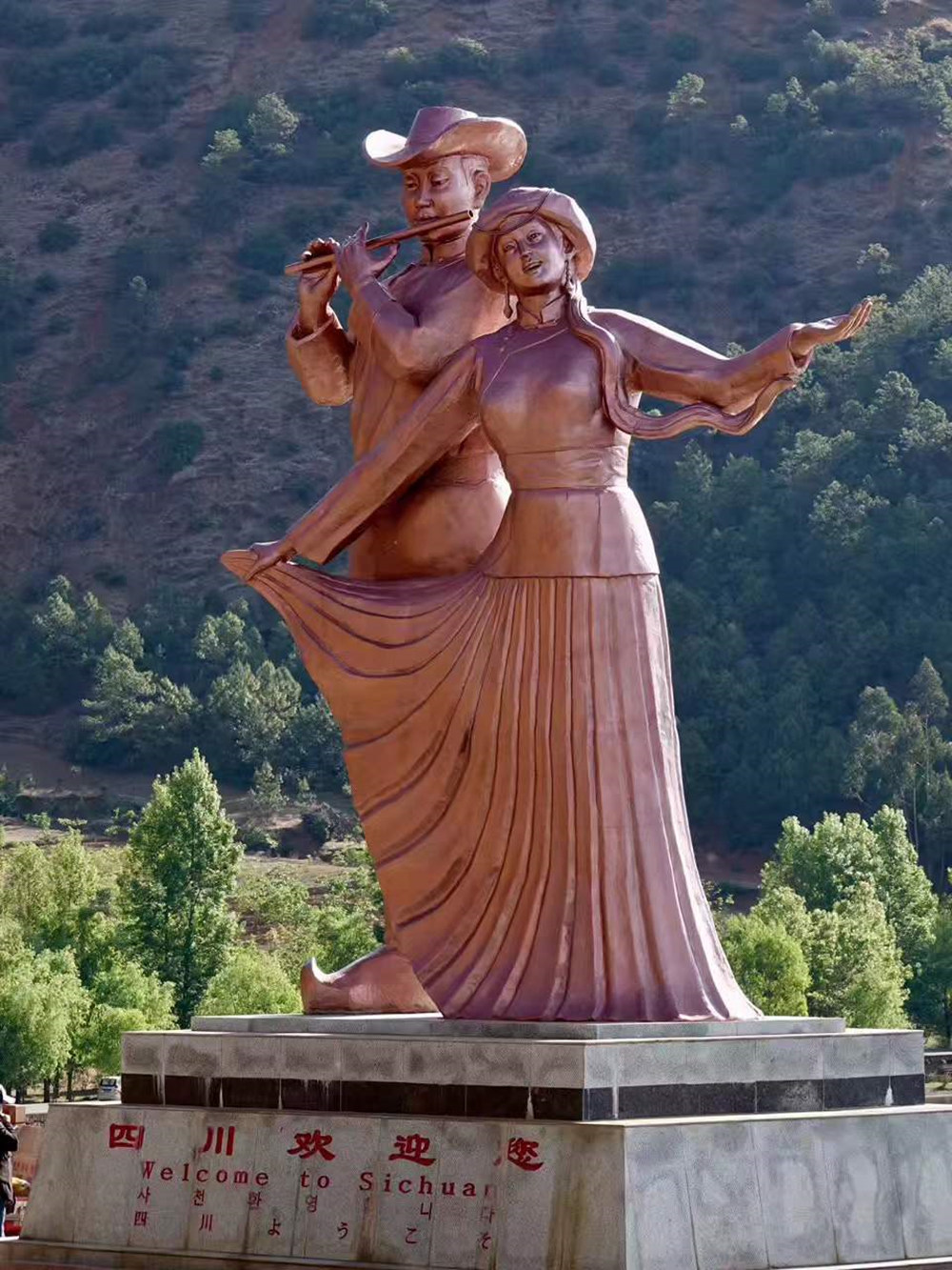 小洛水村是云南境內(nèi)瀘沽湖邊的一個(gè)村寨,村口的這座雕像就是云南和四川的交界線。李仁奇 攝