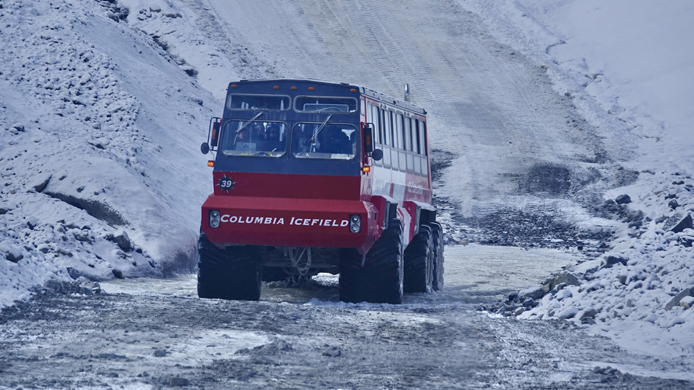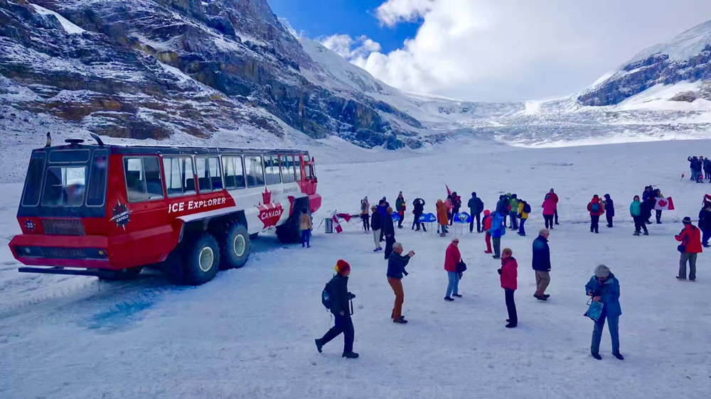 哥倫比亞冰原是北美洲最容易進(jìn)入的冰川群。乘坐特別設(shè)計(jì)的“冰原探險(xiǎn)家號”全地形旅游巴士,可以輕松踏上長達(dá)六千米的阿薩巴斯卡冰河上的冰原。李仁奇 攝