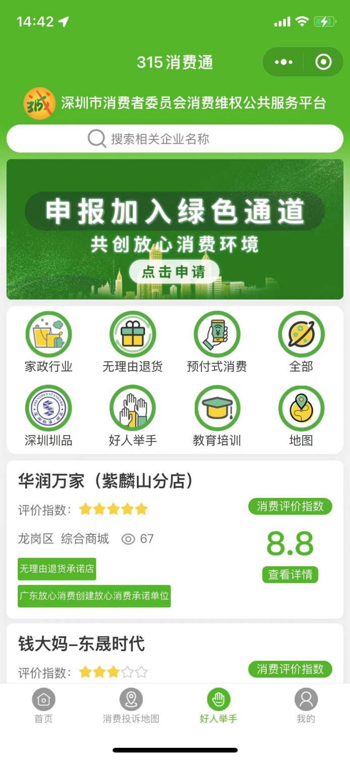 深圳消委會“315消費(fèi)通”小程序“好人舉手”-“無理由退貨”欄目