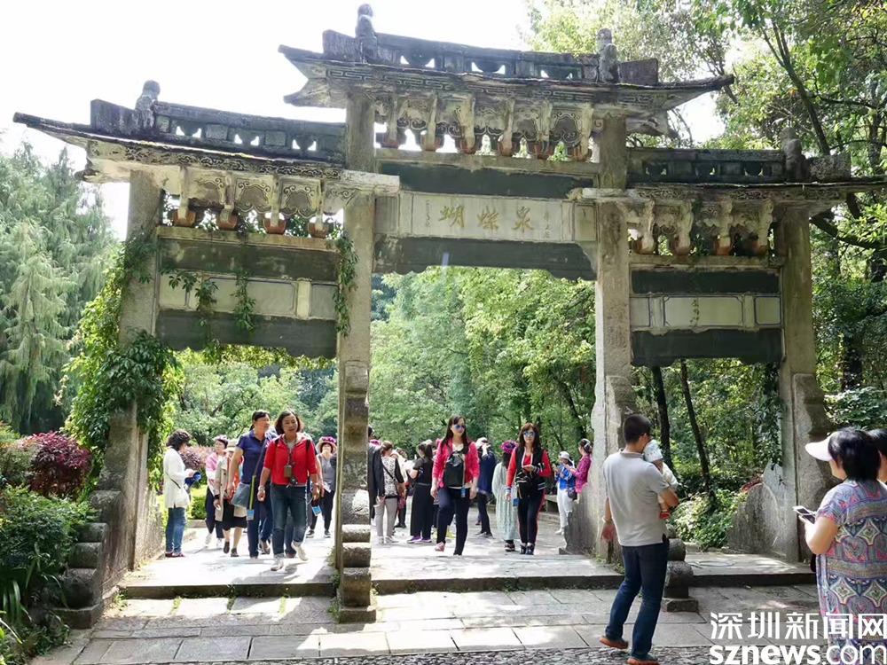 蝴蝶泉水清澈如鏡,水石相映,樹影搖晃。西壁上方鐫刻著郭沫若題寫的“蝴蝶泉”三個大字。池邊的蝴蝶樹,猶如一條青龍橫臥于泉池上。李仁奇 攝