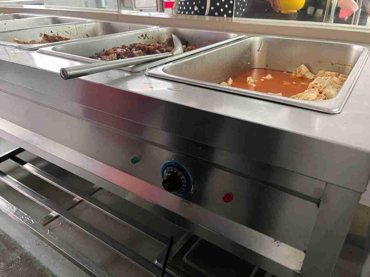 執(zhí)法人員也對(duì)后廚的設(shè)施進(jìn)行了細(xì)致檢查。在檢查消毒柜時(shí),執(zhí)法人員發(fā)現(xiàn)該消毒柜未連通電源,對(duì)存放在其中的餐具起不到消毒的作用;而在配餐間,存放菜品的保溫池也并未接通電源,執(zhí)法人員稱,若保溫池不接通電源,菜品的中心溫度極有可能無法保持在70°以上,容易滋生細(xì)菌,造成食物中毒。