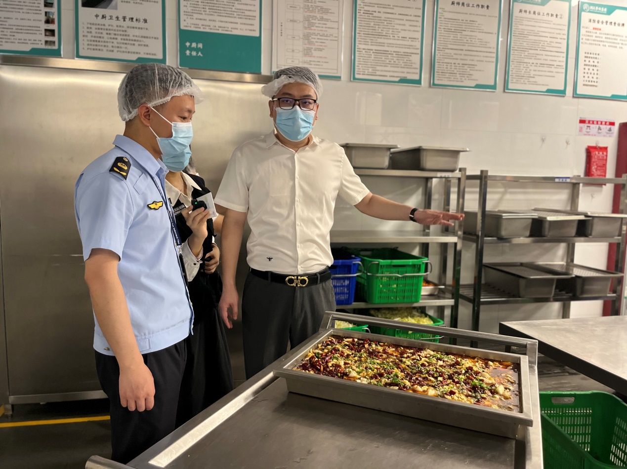 執(zhí)法人員現(xiàn)場對學(xué)校后廚進(jìn)行詳細(xì)檢查,分別從采購索證索票、進(jìn)貨查驗(yàn)、制作加工、備餐配送、場所和設(shè)施清潔維護(hù)、餐飲具清洗消毒、從業(yè)人員健康管理,制止餐飲浪費(fèi),食品安全總監(jiān)配置履職情況,以及落實(shí)主體責(zé)任的“日管控周排查月調(diào)度”制度等方面進(jìn)行詳細(xì)檢查。經(jīng)檢查,整體情況良好,但存在部分細(xì)節(jié)問題,如水產(chǎn)品刀具分類可更細(xì)致、操作臺(tái)積水需清理、面點(diǎn)間的食材存放需避免陽光直射等,針對檢查過程中發(fā)現(xiàn)的問題,執(zhí)法人員現(xiàn)場責(zé)令學(xué)校限期整改到位。同時(shí),快檢工作人員對餐廳使用的食材進(jìn)行了抽檢,結(jié)果均為陰性。