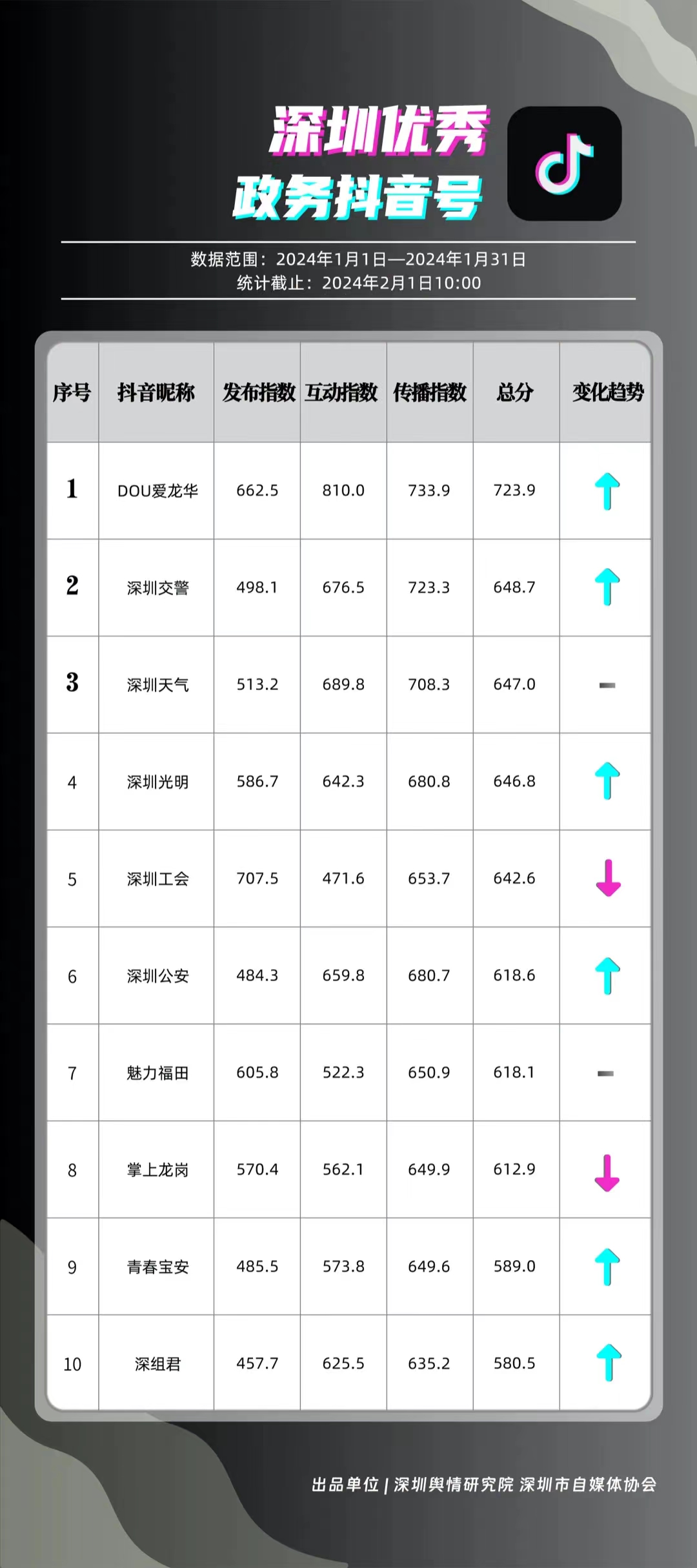 1月深圳優(yōu)秀政務(wù)新媒體矩陣發(fā)布!多矩陣表現(xiàn)亮眼!