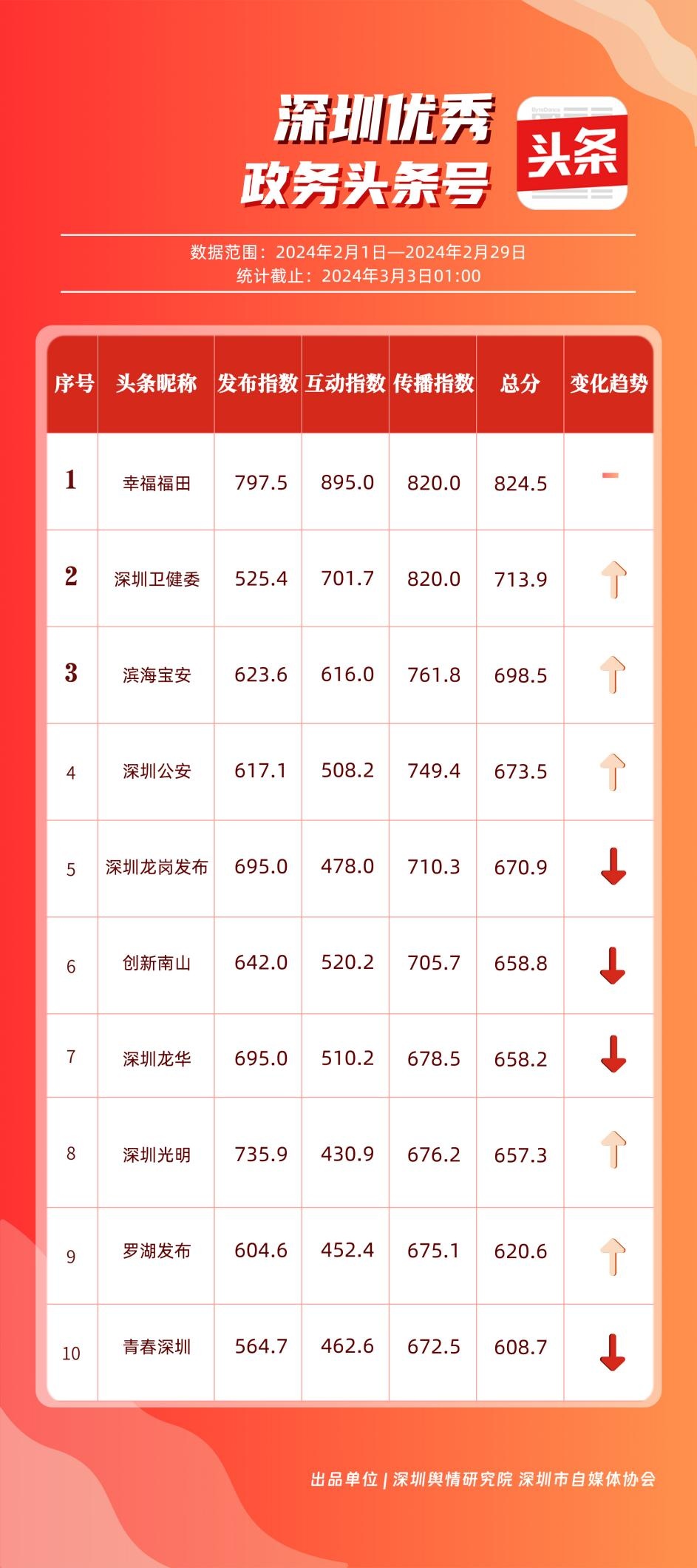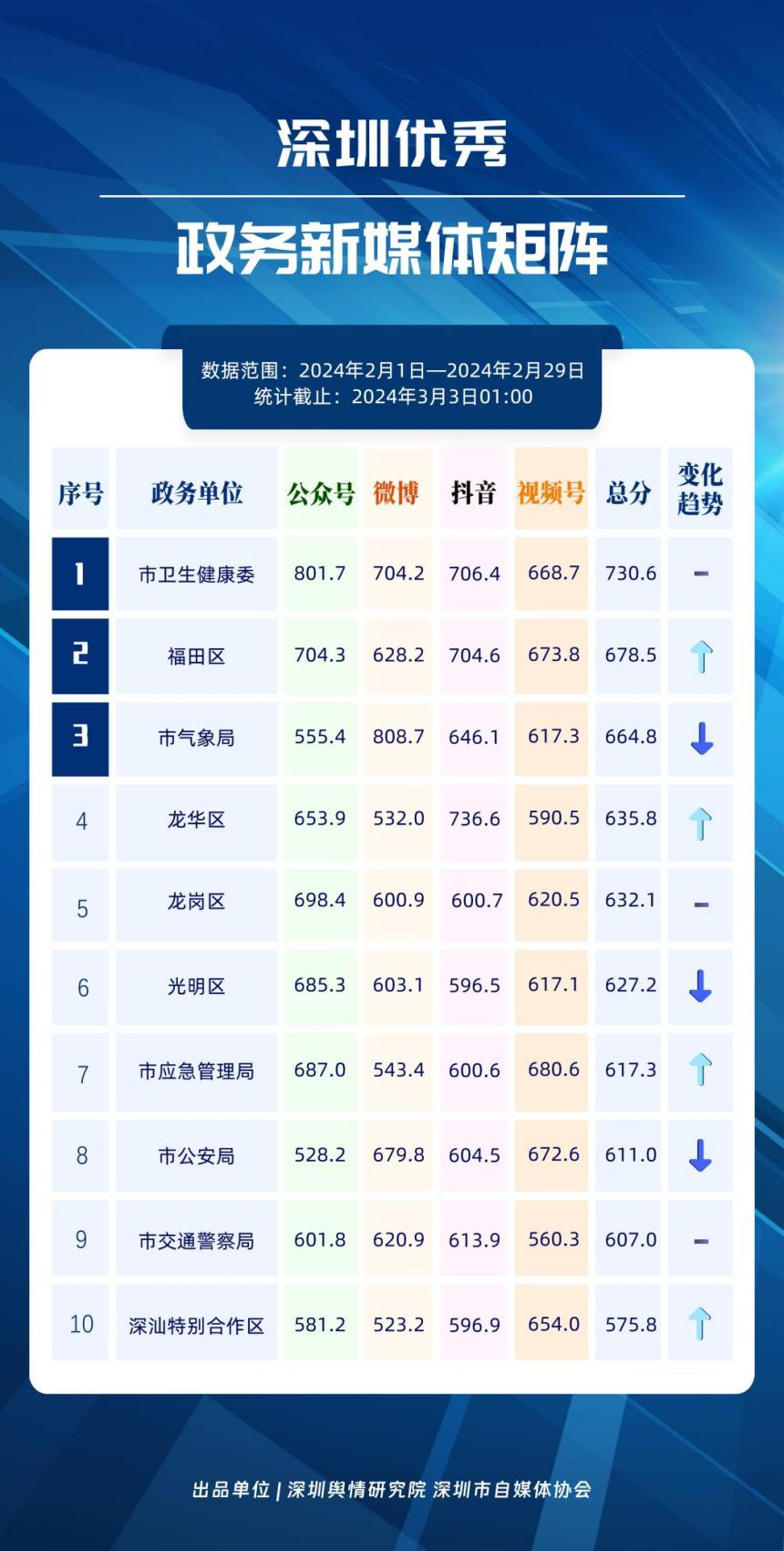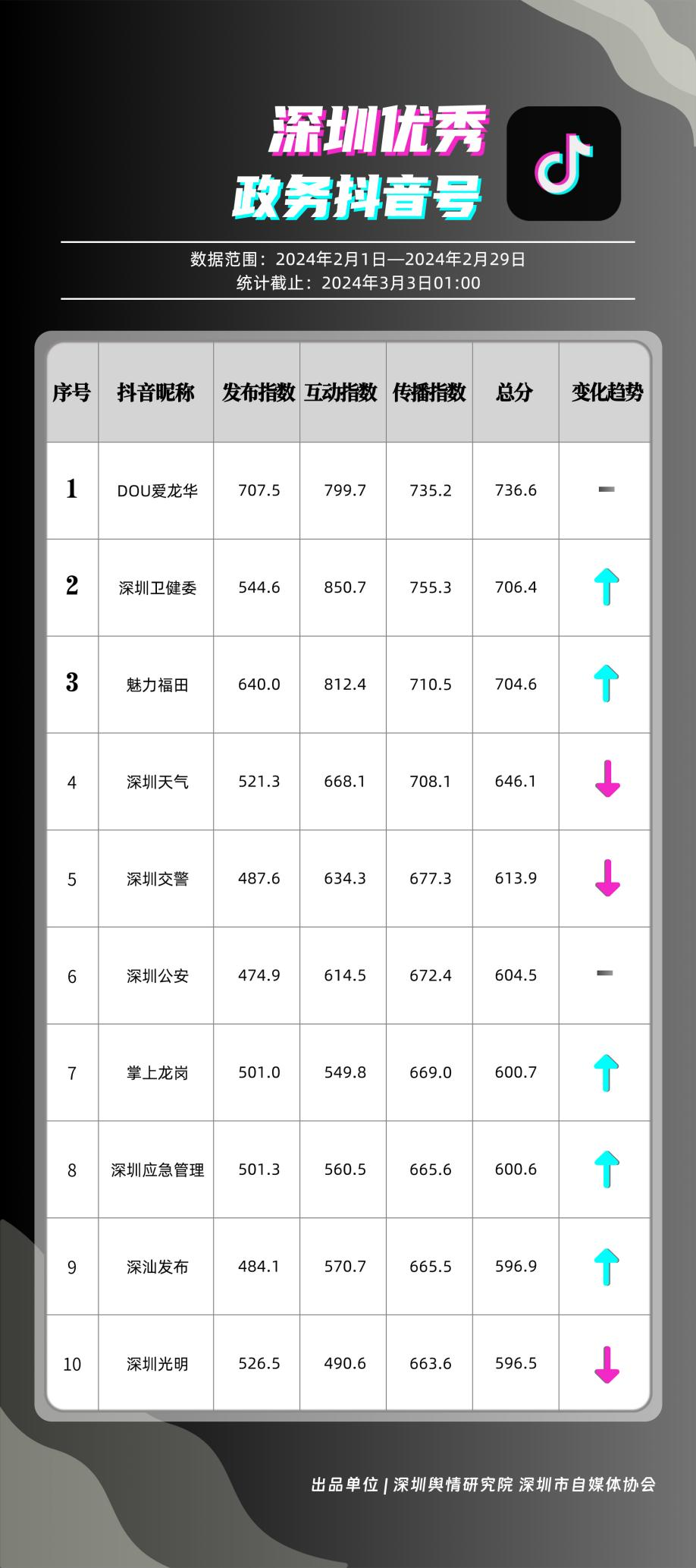 記者關(guān)注到,2月深圳優(yōu)秀政務新媒體矩陣共10個,展現(xiàn)出多單位在鍛造政務新媒體優(yōu)質(zhì)矩陣方面取得的良好成效,助力深圳政務新媒體矩陣健康有序發(fā)展。