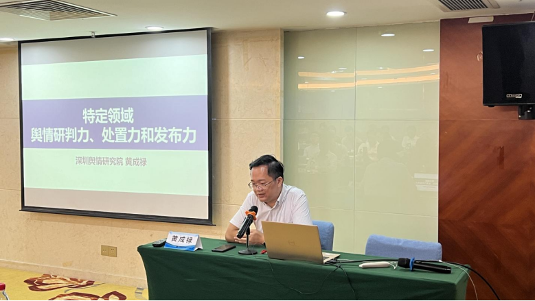深圳新聞網(wǎng)2024年8月2日訊(記者 蔡雪曼 實(shí)習(xí)生 謝臻兒)為提高全市特定領(lǐng)域人員輿情工作素養(yǎng),深化輿情意識和認(rèn)知,助力營造良好的輿論氛圍,7月25日下午,某市直單位舉辦專題培訓(xùn)班,邀請深圳輿情研究院執(zhí)行院長黃成祿擔(dān)任授課老師,圍繞《特定領(lǐng)域輿情研判力、處置力和發(fā)布力》主題展開授課。