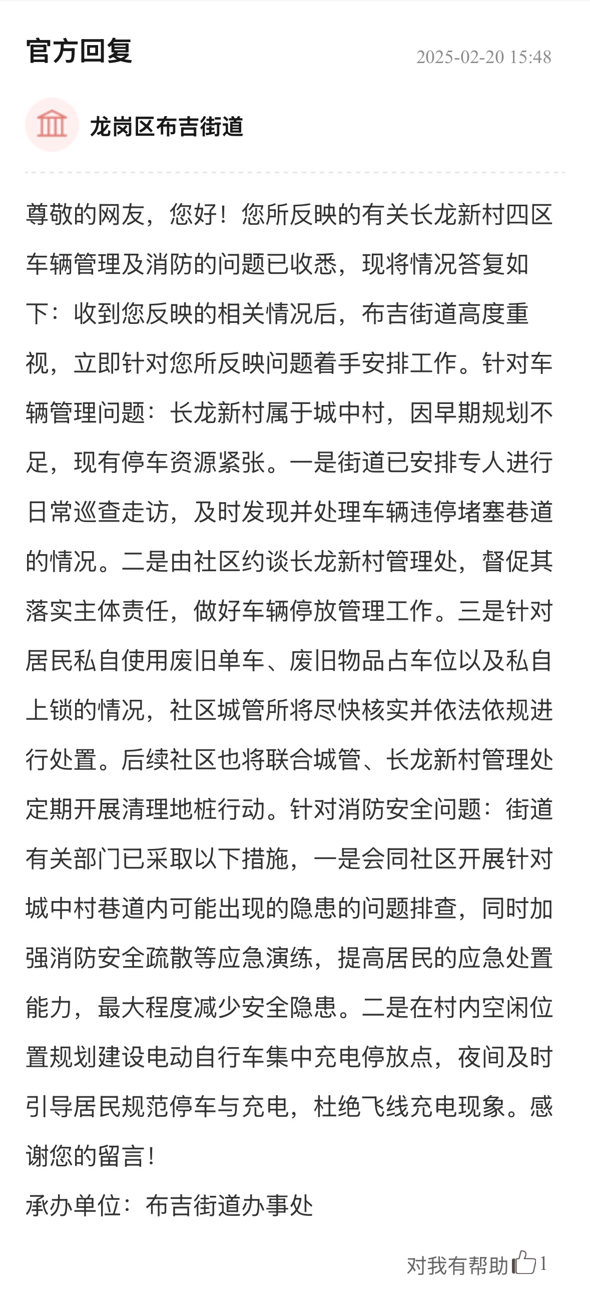 有市民反映龍崗區(qū)一城中村存在車(chē)輛管理和消防安全問(wèn)題,影響居民的居住安全與生活安全