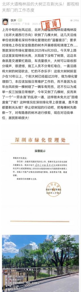 31. 帖文《北環(huán)大道梅林段的大樹正在剃光頭!鄙視相關部門的工作態(tài)度》