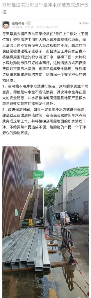 17. 帖文《呼吁福田農批每日早晨沖水保潔方式進行改進》