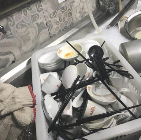 • · 餐具放置混亂 且沒(méi)有消毒柜與保潔柜