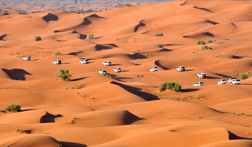 沙漠中的驚險(xiǎn)“游戲” 看迪拜土豪怎么“沖沙”