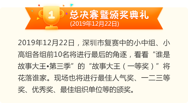 讓閱讀成為動人的風景,讓故事的魅力感動深圳。為助力建設(shè)良好的青少年閱讀環(huán)境,激發(fā)學(xué)生閱讀興趣,倡導(dǎo)親子閱讀,共建和諧家庭關(guān)系。2020年,第二十一屆深圳讀書月主題活動“誰是故事大王·第四季”在共青團深圳市委員會、深圳市關(guān)愛行動組委會辦公室的指導(dǎo)下再出發(fā)。更長的活動周期,更豐富的參與形式,更專業(yè)的賽制,“誰是故事大王·第四季”等你來解鎖與挑戰(zhàn)!