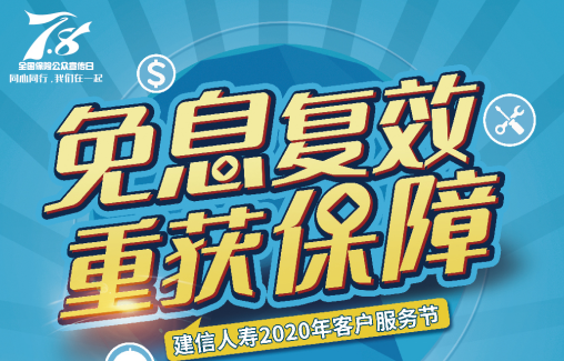 遇見(jiàn)7.8,“遇建感恩季,信福永相伴”。2020年7月1日建信人壽2020年客戶服務(wù)節(jié)盛大開(kāi)幕,活動(dòng)時(shí)間截止到2020年9月30日。