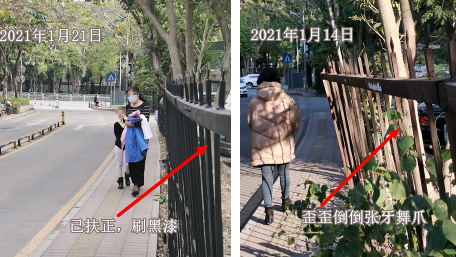 此前因找不到代建單位而無(wú)法移交主管部門管養(yǎng)的竹香一路,僅僅過(guò)了一周的時(shí)間,歪歪倒倒的圍欄扶正了,人行道也即將拓寬。